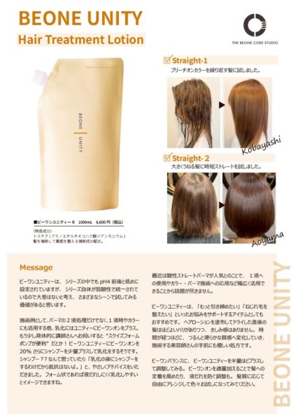 弱酸性のうるおいバランスで髪に自然な艶とうるおいを与えるプロユースのヘアトリートメントローション「NEWビーワンユニティー(1000mL)」を12月15日(月)20時15分からリニューアル発売いたします。