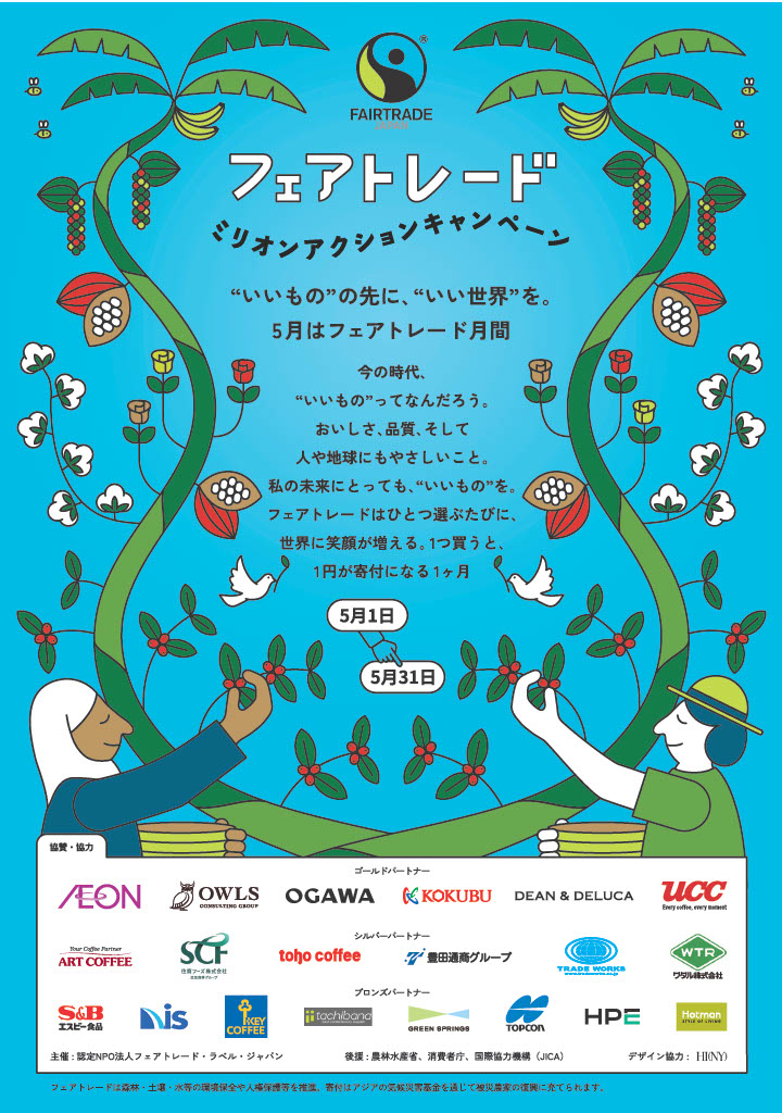 5月第2土曜日(2026年5月9日)は世界フェアトレード・デー。フェアトレード・ジャパンでは、5月の1ヶ月間を「フェアトレード月間」と位置づけ、フェアトレードを通じて気候変動に取り組む国内最大規模の啓発キャンペーン「フェアトレード・ミリオンアクションキャンペーン2026」を開催します。