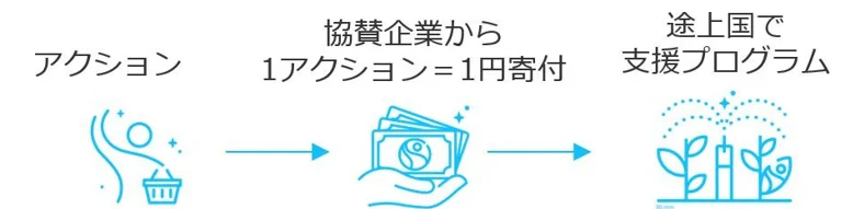 ミリオンアクションキャンペーンは、5月の1ヶ月間、フェアトレードに関する「商品購入」や「SNS投稿」、「イベント参加」などのアクションをカウントし、1アクション=1円として開発途上国の生産者へ寄付する参加型のキャンペーンです。