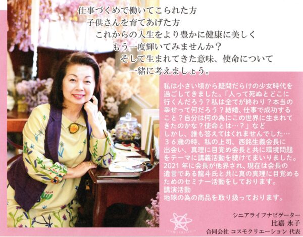 肉体だけでなく、心・魂・波動・環境まで含めたトータルなケアを目指す。