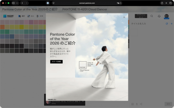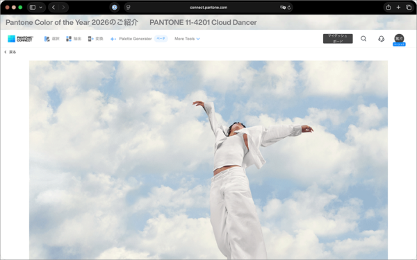 「クラウド ダンサー」のカラー素材をPantoneのサイトから利用できます。