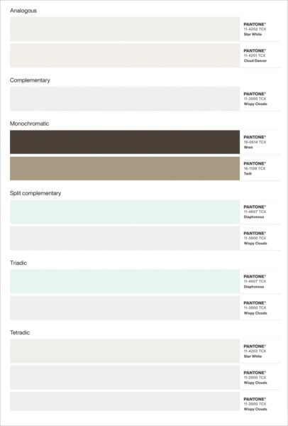 2026年のトレンドカラー「クラウド ダンサー」を使用した配色を紹介します。
