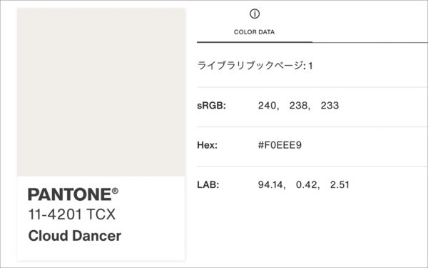 PANTONE 11-4201 TCX Cloud Dancer「クラウド ダンサー」