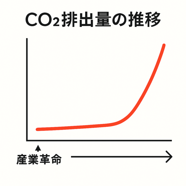 ② CO₂排出量の推移グラフ 🌡️ 産業革命以降、急激に増加した二酸化炭素の排出量。人新世の始まりを示す重要なサインのひとつです。